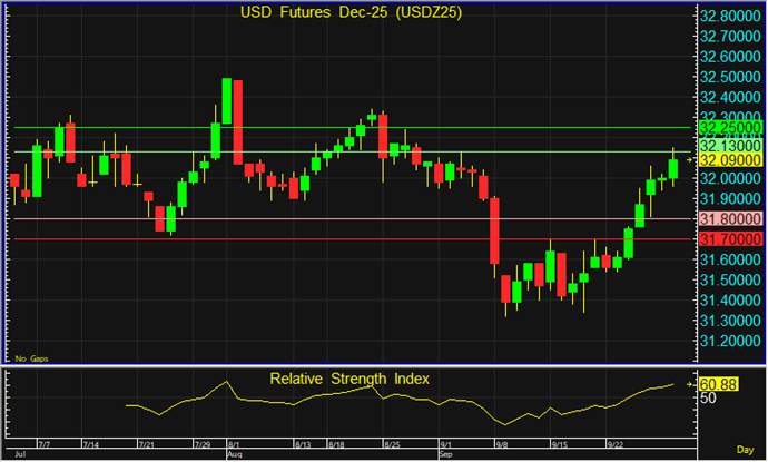ราคา USDZ25 ที่ฟื้นตัวขึ้นมา อาจยังติดแนวต้านที่ระดับ 32.13 บาท จึงแนะนำรอเปิด Short จากแนวต้านดังกล่าว โดยมีเป้าหมายทำกำไรที่ระดับ 31.80 บาท และตัดขาดทุนหากราคาทะลุแนวต้านที่ระดับ 32.25 บาทขึ้นไป