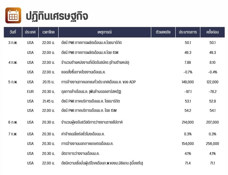 คืนนี้สหรัฐฯ จะเปิดเผยดัชนี PMI ภาคการผลิตเดือนม.ค.โดย ISM ตลาดคาดว่าจะทรงตัว 49.3