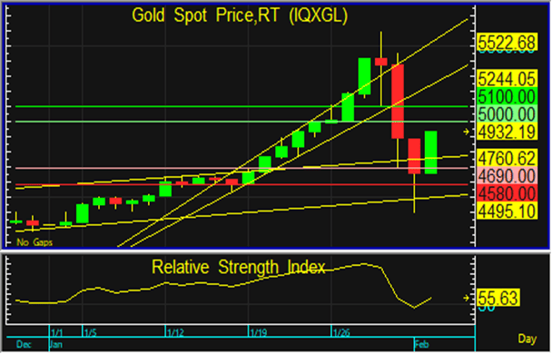 ราคาทองโลกสามารถฟื้นตัวขึ้นยืนเหนือแนวรับบริเวณ 4,690 และ 4,580 ดอลลาร์ จึงประเมินว่า ทองโลกมีแนวโน้มปรับตัวขึ้นทดสอบแนวต้าน ที่ 5,000 และ 5,100 ดอลลาร์ และอาจมีการย่อตัวลงอีกครั้งในภายหลัง แต่หากทองโลกหลุดแนวรับที่ 4,580 ดอลลาร์ ลงไป ทองโลกอาจปรับฐานลงต่อเนื่อง