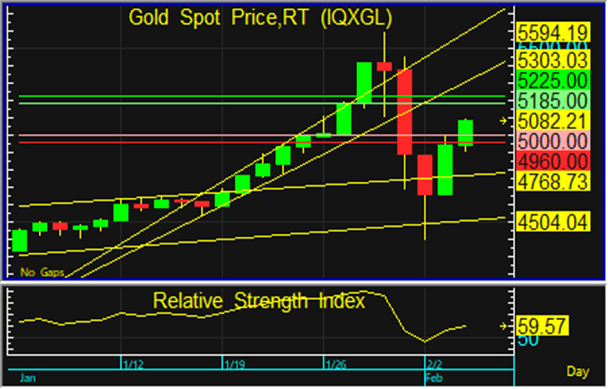 ราคาทองโลกสามารถฟื้นตัวขึ้นยืนเหนือแนวรับบริเวณ 5,000 และ 4,960 ดอลลาร์ จึงประเมินว่า ทองโลกมีแนวโน้มปรับตัวขึ้นทดสอบแนวต้านบริเวณ 5,185 และ 5,225 ดอลลาร์ และอาจมีการย่อตัวลงอีกครั้งในภายหลัง แต่หากทองโลกหลุดแนวรับที่ 4,960 ดอลลาร์ ลงไป ทองโลกอาจปรับฐานลง