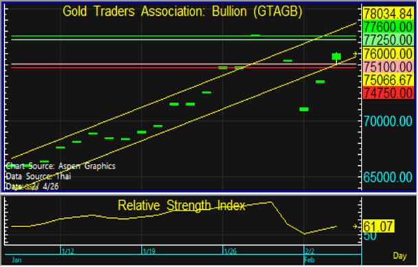 ราคาทองในประเทศมีการฟื้นตัวขึ้นตามทองโลก ในขณะที่ค่าเงินบาทอ่อนค่าหนุน จึงแนะนำทยอยขายตามแนวต้านที่ระดับ 77,250 และทยอยซื้อตามแนวรับที่ 75,100 บาท แต่หากราคาหลุดแนวรับที่ 74,750 บาท ลงไป แนะนำขายตัดขาดทุน