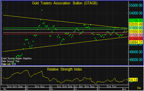 ราคาทองในประเทศอยู่ในระยะ Sideway ในกรอบแคบจากการที่ทองโลกเป็นขาขึ้น ขณะที่ค่าเงินบาทแข็งค่า จึงแนะนำเข้าซื้อสะสมแนวรับที่ระดับ 51,400 บาท และขายทำกำไรหากราคาทดสอบแนวต้านที่ 51,800 บาท แต่หากราคาหลุดแนวรับที่ 51,200 บาท ลงไป แนะนำขายตัดขาดทุน