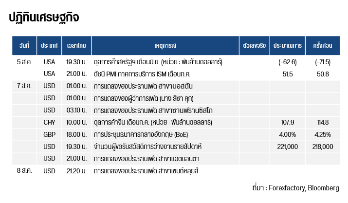 นายเรียวเซ อาคาซาวะ หัวหน้าผู้เจรจาภาษีศุลกากรของญี่ปุ่น เผยว่า ตนได้วางแผนจะเดินทางไปกรุงวอชิงตันตั้งแต่วันนี้ เพื่อผลักดันให้ปธน.โดนัลด์ ทรัมป์ ลงนามในคำสั่งฝ่ายบริหารให้มีผลบังคับใช้อัตราภาษีรถยนต์ที่ตกลงกันไว้ จากปัจจุบันที่ 25% ให้ลดลงเหลือ 15% เนื่องจากก่อนหน้านี้ สหรัฐฯ – ญี่ปุ่น ได้บรรลุข้อตกลงภาษีศุลกากรที่ 15% ยกเว้นสินค้ากลุ่มยานยนต์ ปิดท้ายด้วยข้อมูลที่น่าสนใจ ธนาคารยักษ์ใหญ่สหรัฐฯ อย่าง Goldman Sachs คาดการณ์ว่าเฟดจะลดดอกเบี้ย 0.25% จำนวน 3 ครั้งในปีนี้ โดยเริ่มต้นที่เดือนก.ย. และมีแนวโน้มว่าเฟดอาจลดมากถึง 0.50% หากข้อมูลตัวเลขแรงงานประกาศออกมาอ่อนแอต่อเนื่อง