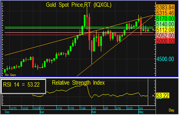 ราคาทองโลกปรับตัวขึ้นทดสอบแนวรับที่ 5,140 ดอลลาร์ และมีการย่อตัวลง จึงประเมินว่า ทองโลกมีแนวโน้มปรับตัวลงทดสอบแนวรับบริเวณ 5,052 และ 5,000 ดอลลาร์ และอาจมีการฟื้นตัวขึ้นอีกครั้งในภายหลัง แต่หากทองโลกหลุดแนวรับถัดไปที่ 5,000 ดอลลาร์ ทองโลกอาจปรับฐานลงต่อเนื่อง