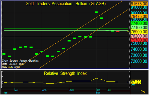 ราคาทองในประเทศมีการแกว่งตัวขึ้น / ลงตามทองโลก ในขณะที่ค่าเงินบาทอ่อนค่า จึงแนะนำทยอยขายตามแนวต้านที่ระดับ 77,100 และทยอยซื้อตามแนวรับที่ 76,200 บาท แต่หากราคาหลุดแนวรับที่ 75,700 บาท ลงไป แนะนำขายตัดขาดทุน