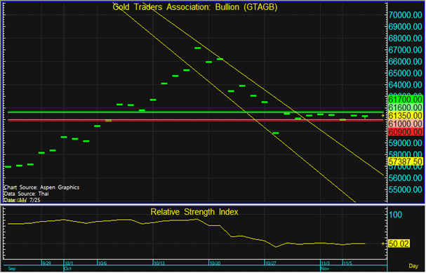 จึงแนะนำทยอยขายตามแนวต้านที่ระดับ 61,600 และทยอยซื้อตามแนวรับที่ 61,000 บาท แต่หากราคาหลุดแนวรับที่ 60,900 บาท ลงไป แนะนำขายตัดขาดทุน