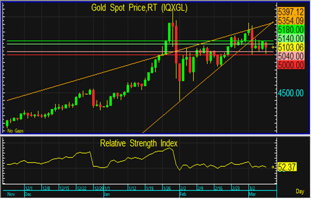 ทองโลกยังอยู่ในระยะ Sideway จึงแนะนำใช้กลยุทธ์ทยอยขายตามแนวต้านบริเวณ 5,140 และ 5,180 ดอลลาร์ และซื้อสะสมหากราคาลงมาทดสอบแนวรับที่ 5,040 ดอลลาร์ และหากราคาหลุดแนวรับที่ 5,000 ดอลลาร์ ลงไป แนะนำขายตัดขาดทุน