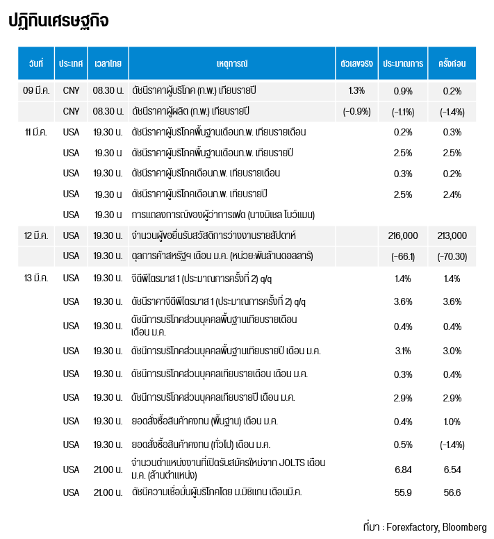ทองโลกมีการฟื้นตัวขึ้นระยะสั้น จากการที่ดัชนีเงินดอลลาร์ (DXY) มีแนวโน้มปรับตัวขึ้นเป็นวันที่ 6 สู่ระดับ 99.45 หน่วย จากเมื่อวันที่ 2 มี.ค. ที่ระดับ 97.87 หน่วย อีกทั้งบอนด์ยีลด์สหรัฐฯ อายุ 10 ปี มีแนวโน้มปรับตัวขึ้นต่อเนื่องเป็นวันที่ 6 สู่ระดับ 4.19% จาก 3.93% ในขณะที่นางคริสตาลินา กอร์เกียวา กรรมการผู้จัดการของกองทุนการเงินระหว่างประเทศ (IMF) ออกโรงเตือนในวันจันทร์ นี้ว่า ความขัดแย้งในตะวันออกกลางอาจสร้างความเสี่ยงต่อภาวะเงินเฟ้อโลก โดยระบุว่า หากราคาน้ำมันเพิ่มขึ้น 10% และคงอยู่ในระดับดังกล่าวเกือบตลอดทั้งปี 2026 จะทำให้เงินเฟ้อทั่วโลกเพิ่มขึ้นถึง 0.4% และลดการเติบโตทางเศรษฐกิจลงประมาณ 0.2% นอกจากนี้ ทองคำยังถูกใช้สินทรัพย์สภาพคล่องสูงในช่วงที่ตลาดหุ้นทั่วโลกกำลังทรุดตัวลงอย่างหนักและต้องขายทองคำเพื่อชดเชยกับภาวะ Call Margin ซึ่งปัจจัยข้างต้นได้ส่งผลให้ทองคำมีการปรับตัวลง อย่างไรก็ตามสงครามในตะวันออกกลางเข้าสู่วันที่ 10 ในขณะที่เมื่อวันอาทิตย์ อิหร่านได้เลือกนายมุจตาบา คาเมเนอี (Mojtaba Khamenei) ซึ่งเป็นบุตรชายคนที่สองของอยาตุลเลาะห์ อาลี คาเมเนอี ซึ่งเป็นบุคคลที่ปธน.ทรัมป์ไม่ต้องการ และอิหร่านยังคงเดินหน้าโจมตีในภูมิภาคอ่าวเปอร์เซียอย่างต่อเนื่อง ส่วนทางฝั่งอิสราเอลได้โจมตีคลังเชื้อเพลิงในกรุงเตหะรานและขู่จะโจมตีระบบโครงข่ายไฟฟ้าของสาธารณรัฐอิสลาม ซึ่งปัจจัยดดังกล่าวยังเป็นปัจจัยหนุนให้ราคาทองคำปรับตัวขึ้น