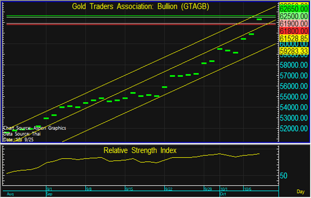 ทองในประเทศอยู่ในระยะขาขึ้นตามทองโลก ในขณะที่ค่าเงินบาทอ่อนค่าเป็นปัจจัยหนุน จึงแนะนำขายตามแนวต้านที่ระดับ 62,500 และ 62,650 บาท และรอเข้าซื้อสะสมตามแนวรับที่ 61,900 บาท แต่หากราคาหลุดแนวรับที่ 61,800 บาท แนะนำขายตัดขาดทุน