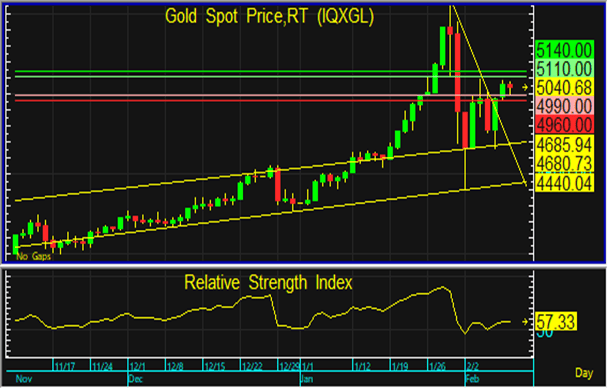 ราคาทองโลกได้มีการปรับตัวลงทดสอบแนวรับที่ 4,990 ดอลลาร์ และมีการฟื้นตัวขึ้น จึงประเมินว่า ทองโลกมีแนวโน้มปรับตัวขึ้นทดสอบแนวต้านที่ 5,110 และ 5,140 ดอลลาร์ และอาจมีการย่อตัวลงอีกครั้งในภายหลัง แต่หากทองโลกหลุดแนวรับที่ 4,960 ดอลลาร์ ลงไป ทองโลกอาจปรับฐานลงต่อเนื่อง