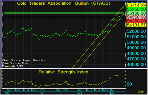 ราคาทองในประเทศอยู่ในระยะ Sideway Upจากการที่ทองโลกเป็นขาขึ้น แต่ค่าเงินบาทแข็งค่าต่อเนื่อง จึงแนะนำเข้าซื้อสะสมแนวรับที่ระดับ 54,550 บาท และขายทำกำไรหากราคาทดสอบแนวต้านที่ 55,150 บาท แต่หากราคาหลุดแนวรับที่ 54,350 บาท