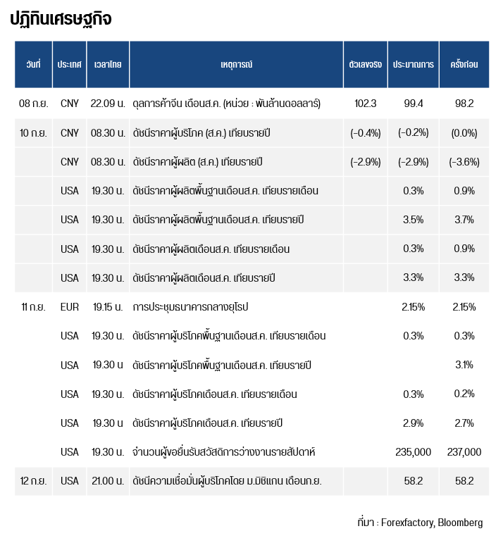 คืนนี้เวลา เวลา 19.30 สหรัฐฯ เผยดัชนีราคาผู้ผลิตพื้นฐานเดือนส.ค. เทียบรายเดือน / รายปี และ ดัชนีราคาผู้ผลิตทั่วไปเดือนส.ค. เทียบรายเดือน / รายปี