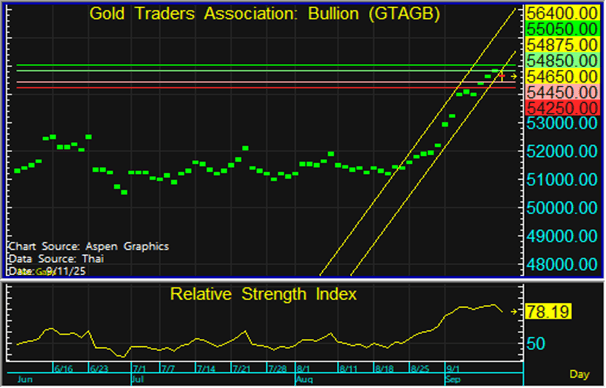 ทองโลกยังคงแกว่งตัวในกรอบ จากการที่ดัชนีเงินดอลลาร์ (DXY) มีการแข็งค่าระยะสั้น สืบเนื่องมาจากคำตัดสินของเจีย ค็อบบ์ ผู้พิพากษาศาลแขวงในวอชิงตันที่ให้ระงับคำสั่งของปธน.ทรัมป์ในการถอดถอนนางลิซา คุก ออกจากตำแหน่งผู้ว่าการเฟด ซึ่งทำให้คุกสามารถกลับมาทำงานได้ตามปกติและสามารถเข้าร่วมการประชุม FOMC วันที่ 17-18 ก.ย. ได้ แต่ทว่าฝ่ายบริหารของทรัมป์ได้ยื่นอุทธรณ์เพื่อสู้คดีต่อเมื่อวันพุธที่ผ่านมา อย่างไรก็ตาม สหภาพยุโรป (EU) กำลังเตรียมมาตรการคว่ำบาตรต่อรัสเซียรอบที่ 19 ควบคู่ไปกับการเพิ่มความช่วยเหลือทางการเงินและทางทหารแก่ยูเครนด้วยการนำทรัพย์สินของรัสเซียที่ถูกอายัดไว้มาใช้เป็นหลักประกัน อีกทั้งยังมีการประกาศจัดตั้งพันธมิตรโดรน (Drone Alliance) ร่วมกับยูเครน เพื่อช่วยรักษาความได้เปรียบในสนามรบ ในขณะที่ธนาคารกลางยุโรป (ECB) มีแนวโน้มตรึงอัตราดอกเบี้ยไว้ที่ 2.15% ในการประชุมคืนนี้ ซึ่งอาจทำให้ยูโรแข็งค่าและดอลลาร์อ่อนค่าในภายหลัง