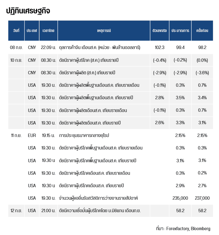 คืนนี้เวลา เวลา 19.15 น. ยุโรป เผยการประชุมธนาคารกลางยุโรป และเวลา 19.30 น. สหรัฐฯ เผยดัชนีราคาผู้บริโภคพื้นฐาน / ทั่วไป เดือนส.ค. เทียบรายเดือน / รายปี , จำนวนผู้ขอยื่นรับสวัสดิการว่างงานรายสัปดาห์