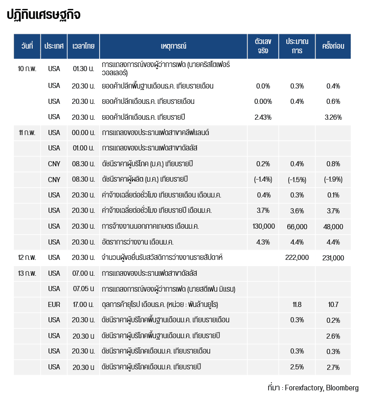 ทองโลกยังคงทรงตัวในกรอบแนวรับ / ต้าน จากการที่ดัชนีเงินดอลลาร์ (DXY) ได้มีแนวโน้มปรับตัวลงเป็นวันที่ 5 สู่ระดับ 96.84 หน่วย จาก 97.97 หน่วย อีกทั้งบอนด์ยีลด์สหรัฐฯ อายุ 10 ปี ยังคงทรงตัวที่ระดับ 4.17% ในขณะที่นายฮาคาน ฟิดาน รมว.ต่างประเทศของตุรกี ได้กล่าวว่าสหรัฐฯ กับอิหร่านเริ่มแสดงความยืดหยุ่นในการเจรจาข้อตกลงนิวเคลียร์ โดยระบุว่าสหรัฐฯ มีท่าทียินยอมให้อิหร่านเสริมสมรรถนะยูเรเนียมได้บ้างภายใต้ขอบเขตที่กำหนดไว้ชัดเจน นอกจากนี้ ตัวเลข CME FedWatch ได้คาดการณ์ถึง 92.5% ว่าเฟดอาจคงดอกเบี้ย 3.50-3.75% ในการประชุม FOMC ในเดือน มี.ค. หลังจากสหรัฐฯ เผยตัวเลขการจ้างงานฯ / อัตราการว่างงานที่เป็นไปในเชิงบวกต่อเศรษฐกิจ อย่างไรก็ตาม ปธน.ทรัมป์ได้กล่าวว่า สหรัฐฯ คงต้องรอดูว่าผลลัพธ์จะเป็นอย่างไร ในขณะที่สหรัฐฯ ยังคงตรึงกำลังกองเรือรบไว้ในภูมิภาคอย่างต่อเนื่อง ในขณะที่สำนักงานงบประมาณรัฐสภาสหรัฐ (CBO) ออกโรงเตือนอีกครั้งว่า ระบบการของสหรัฐฯ กำลังอยู่ในสถานะที่ไม่ยั่งยืน พร้อมปรับเพิ่มประมาณการขาดดุลในช่วง 10 ปีข้างหน้าอีก 1.4 ล้านล้านดอลลาร์ โดยมีปัจจัยสำคัญจากกฎหมายภาษีปี 2025 และนโยบายตรวจคนเข้าเมืองภายใต้ปธน.ทรัมป์