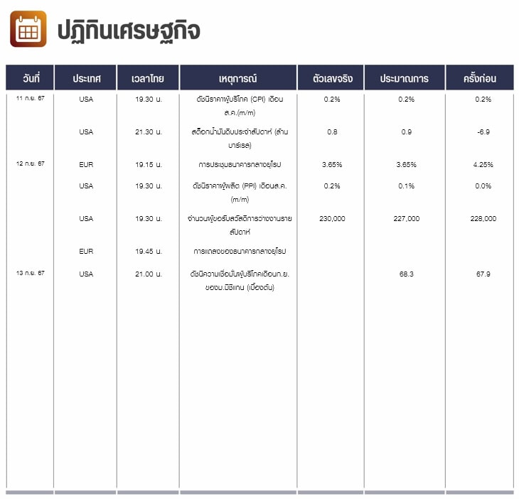 ราคาทองคำปรับตัวขึ้นต่อเนื่องสู่ All-time high จากเงินดอลลาร์อ่อนค่า นักลงทุนคาดการณ์เฟดจะลดดอกเบี้ยในสัปดาห์หน้า ซึ่ง ณ ตอนนี้ นักลงทุนคาดว่าเฟดจะลดดอกเบี้ย 0.25% ในการประชุมสัปดาห์หน้า แต่เพิ่มน้ำหนักเกี่ยวกับการลดดอกเบี้ยมากขึ้นว่ามีความเป็นไปได้ที่เฟดจะลดดอกเบี้ยมากถึง 0.50% ทั้ง 2 การประชุมที่เหลือในเดือนพ.ย. และเดือนธ.ค. ซึ่งสร้างแรงหนุนให้กับราคาทองคำปรับตัวขึ้นแรง