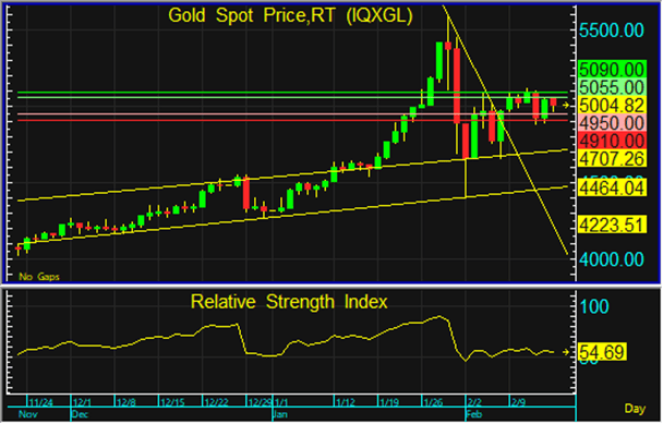 ราคาทองโลกยังสามารถยืนเหนือแนวรับที่ 4,950 ดอลลาร์ จึงประเมินว่า ทองโลกมีแนวโน้มปรับตัวขึ้นทดสอบแนวต้านที่ 5,055 และ 5,090 ดอลลาร์ และอาจมีการย่อตัวลงอีกครั้งในภายหลัง แต่หากทองโลกหลุดแนวรับที่ 4,910 ดอลลาร์ ลงไป ทองโลกอาจมีการปรับฐานลงต่อเนื่อง