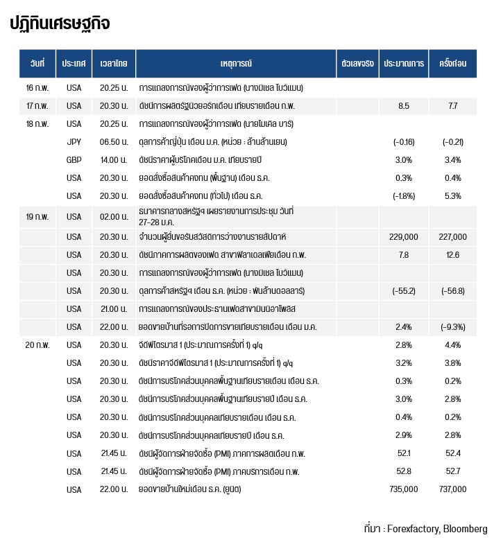 ทองโลกยังคงทรงตัวในกรอบแนวรับ / ต้าน จากการที่ดัชนีเงินดอลลาร์ (DXY) ยังคงทรงตัวในระดับ 96.94 หน่วย ในขณะที่นางดิลิน วู นักยุทธศาสตร์จาก Pepperstone Group Ltd. ได้ระบุใว่า ตลาดยังคงอยู่ในช่วงของการปรับสมดุลระหว่างแรงซื้อและแรงขาย (Bulls and Bears) โดยยังขาดปัจจัยกระตุ้นที่ชัดเจนในการที่จะทะลุออกจากกรอบราคาเดิม ในขณะที่ตลาดในประเทศจีนปิดทำการเนื่องในเทศกาลตรุษจีนตลอดสัปดาห์นี้ ส่งผลให้สภาพคล่องเบาบางกว่าปกติในช่วงเวลาซื้อขายของฝั่งเอเชีย และในวันจันทร์นี้ตลาดสหรัฐฯ จะปิดทำการเนื่องในวันประธานาธิบดี (Presidents’ Day) เช่นกัน ซึ่งจะส่งผลให้ราคาทองคำมีการเคลื่อนไหวที่เบาบางมาก อย่างไรก็ตาม ความต้องการทองคำในจีนยังคงมีความบ้าคลั่งในช่วงไม่กี่เดือนที่ผ่านมาจนเป็นเหตุให้ทางการในศูนย์กลางการค้าปลีกอย่างเมืองเซินเจิ้นต้องออกมาเตือนอย่างเด็ดขาดถึง “กิจกรรมการซื้อขายทองคำที่ผิดกฎหมาย” ตั้งแต่แอปพลิเคชันที่เสนอ Leverage ให้แก่รายย่อยไปจนถึงการ Live Stream ออนไลน์ที่ส่งเสริมการขายทองคำแท่ง ในขณะที่บอนด์ยีลด์สหรัฐฯ อายุ 10 ปี ได้ปรับตัวลงเป็นวันที่ 7 สู่ระดับ 4.05% จาก 4.28% ซึ่งทำให้พันธบัตรสหรัฐฯ เริ่มไม่เป็นที่สนใจของนักลงทุน เนื่องด้วยเป็นสินทรัพย์ปลอดภัยที่ให้ดอกเบี้ยต่ำ
