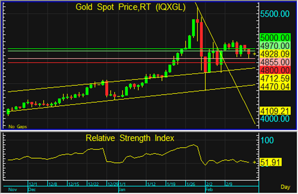ราคาทองโลกยังสามารถยืนเหนือแนวรับที่ 4,855 ดอลลาร์ จึงประเมินว่า ทองโลกมีแนวโน้มปรับตัวขึ้นทดสอบแนวต้านที่ 4,970 และ 5,000 ดอลลาร์ และอาจมีการย่อตัวลงอีกครั้งในภายหลัง แต่หากทองโลกหลุดแนวรับที่ 4,800 ดอลลาร์ ลงไป ทองโลกอาจมีการปรับฐานลงต่อเนื่อง