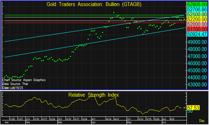 ในช่วงเช้า ทองคำในประเทศไต่ระดับขึ้นจากเงินบาทที่อ่อนค่า หลังดอลลาร์เริ่มแข็งค่าขึ้นและปัจจัยภายในประเทศกดดัน จึงแนะนำใช้กลยุทธ์เชิงรับรอเข้าซื้อจากแนวรับที่ 52,000 บาท โดยมีเป้าทำกำไรที่ 52,500 บาท และตัดขาดทุนหากราคาหลุดแนวรับที่ 51,700 บาทลงไป