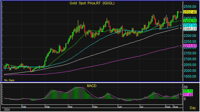 ราคาทองคำเคลื่อนไหวใกล้ระดับ All-Time High บริเวณแถว 2,500 ดอลลาร์ หลังจากเมื่อวันศุกร์ราคาทองคำโลกทำ All-Time High ใหม่ที่ 2,509 ดอลลาร์ จากนักลงทุนมั่นใจว่าเฟดจะลดดอกเบี้ยในเดือนก.ย. และแรงซื้อทองคำ จากสถานการณ์ในตะวันออกกลางและในยูเครน ทั้งนี้นักลงทุนรอติดตามการประชุม Jackson hole ในระหว่างวันที่ 22-24 ส.ค. โดยนายเจอโรม พาวเวล ประธานเฟด จะกล่าวสุนทรพจน์ในวันศุกร์ที่ 23 ส.ค. เวลา 10.00 น. ตามเวลาสหรัฐ ซึ่งประธานเฟดอาจแสดงความเห็นเกี่ยวกับแนวโน้มเศรษฐกิจของสหรัฐ และมีแนวโน้มที่จะประกาศแผนสำหรับการปรับลดดอกเบี้ยเริ่มตั้งแต่เดือนก.ย.