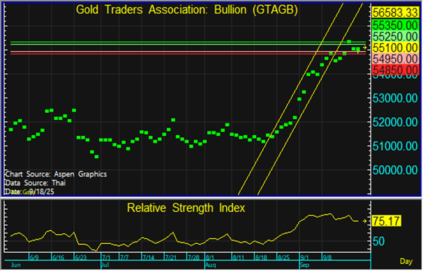 ราคาทองในประเทศอยู่ในระยะ Sideway ตามทองโลก ในขณะที่ค่าเงินบาทกลับมาแข็งค่า จึงแนะนำเข้าซื้อสะสมแนวรับที่ระดับ 54,900 บาท และขายทำกำไรหากราคาทดสอบแนวต้านที่ 55,200 บาท แต่หากราคาหลุดแนวรับที่ 54,800 บาท ลงไป แนะนำขายตัดขาดทุน
