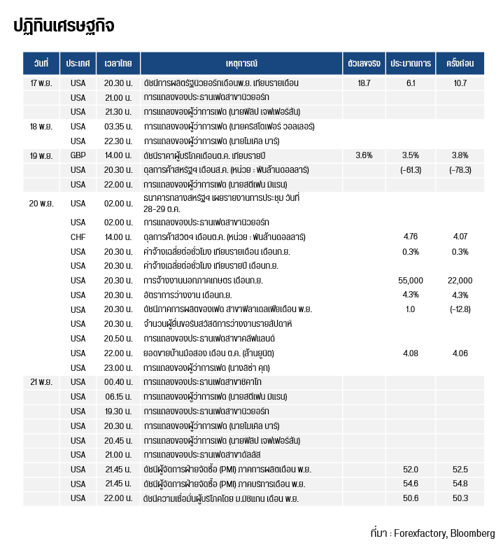 ทองโลกมีการปรับตัวขึ้น จากการที่บอนด์ยีลด์สหรัฐฯ อายุ 10 ปี ได้ทรงตัวอยู่ในกรอบ 4.11% สืบเนื่องมาจากตลาด CME FedWatch ได้คาดการณ์เพิ่มขึ้นเป็น 48.9% จาก 42.4% ว่าเฟดอาจลดดอกเบี้ย 0.25% ในเดือนธ.ค.นี้ ในขณะที่นาย Michael Burry นักลงทุนชื่อดังที่ได้รับสมญานามว่า The Big Short ในสมัยวิกฤตซับไพรม์เมื่อปี 2008 ได้ออกมากล่าวว่า หุ้นบริษัทเทคโนโลยียักษ์ใหญ่สหรัฐฯ กำลังเกิดฟองสบู่ และในฝั่งของนาย Sundar Pichai ผู้เป็น CEO ของ Google ได้กล่าวว่า มูลค่าของบริษัทเทคโนโลยีในปัจจุบันมีมูลค่า / การลงทุนจำนวนมากเกินความเป็นจริงและมีความเสี่ยงในการเกิดฟองสบู่ ซึ่งปัจจัยข้างต้นนี้ ส่งผลให้ราคาทองคำอาจปรับตัวขึ้นโดยได้รับแรงหนุนจากการเป็นสินทรัพย์ปลอดภัยท่ามกลางสินทรัพย์เสี่ยงอย่างหุ้นเกิดความผันผวน อย่างไรก็ตาม ดัชนีเงินดอลลาร์ (DXY) ได้มีแนวโน้มปรับตัวขึ้นเป็นวันที่ 3 สู่ระดับ 99.71 หน่วย จาก 99.26 หน่วย จากการที่คณะกรรมการ FOMC ส่วนใหญ่ยังคงมีแนวโน้มตรึงดอกเบี้ยในเดือนธ.ค.นี้ จากความกังวลภาวะเงินเฟ้อที่ยังคงไม่หดตัวลงสู่ 2%