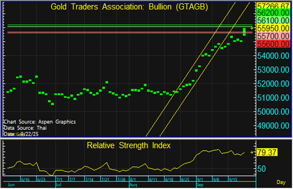 ราคาทองในประเทศรับตัวขึ้นตามทองโลก ในขณะที่ค่าเงินบาทแข็งค่า จึงแนะนำเข้าซื้อสะสมแนวรับที่ระดับ 55,700 บาท และขายทำกำไรหากราคาทดสอบแนวต้านที่ 56,100 บาท แต่หากราคาหลุดแนวรับที่ 55,600 บาท ลงไป แนะนำขายตัดขาดทุน