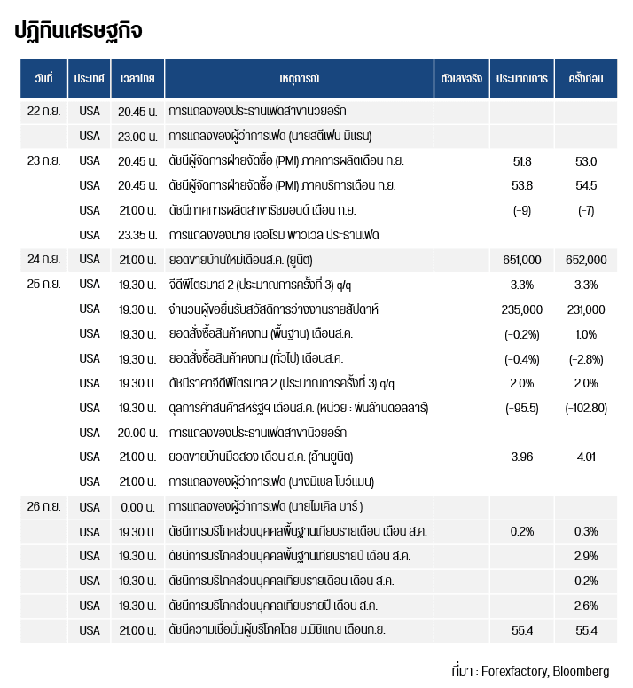 ราคาทองโลกเริ่มมีการปรับตัวขึ้น คาดการณ์สืบเนื่องมาจากเมื่อวันศุกร์ที่ผ่านมา ทางหน่วยงานสหรัฐฯ บางส่วนอาจต้องปิดทำการ เนื่องด้วยกฎหมายงบประมาณชั่วคราวของสหรัฐฯ ยังไม่ผ่านวุฒิสภา ด้วยคะแนน 44:48 เสียง ซึ่งมีไม่มากถึง 60 เสียงที่จำเป็นต่อการผ่านร่างงบประมาณ โดยมีกำหนดเวลาสิ้นสุดการต่ออายุงบประมาณชั่วคราวของรัฐบาลกลางภายในเที่ยงคืนของวันที่ 30 ก.ย.นี้ ในขณะที่เมื่อวันเสาร์ธนาคาร Citi Group ได้คาดการณ์ว่า ทองคำอาจปรับตัวขึ้นสู่ระดับ 3,800 ดอลลาร์ และอาจขึ้นทดสอบ 4,000 ดอลลาร์ หากเฟดต้องลดดอกเบี้ยรุนแรงหากเศรษฐกิจสหรัฐฯ อ่อนแอ นอกจากนี้ ผู้จัดการ Portfolio ของ Morgan Stanley Investment ได้คาดว่า เฟดจะเอนเอียงไปทางปกป้องตลาดแรงงานที่อ่อนแอ ด้วยการลดดอกเบี้ยอย่างต่อเนื่องหลังจากนี้เป็นต้นไป