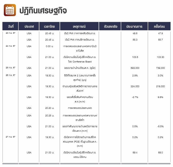 คืนนี้สหรัฐจะเปิดเผยดัชนี PMI ภาคการผลิตเดือนก.ย. ตลาดคาดว่าจะเพิ่มขึ้นสู่ระดับ 48.6 จาก 47.9 ในเดือนส.ค. และดัชนี PMI ภาคบริการเดือนก.ย. ตลาดคาดว่าจะลดลงสู่ระดับ 55.3 จาก 55.7 ในเดือนส.ค.