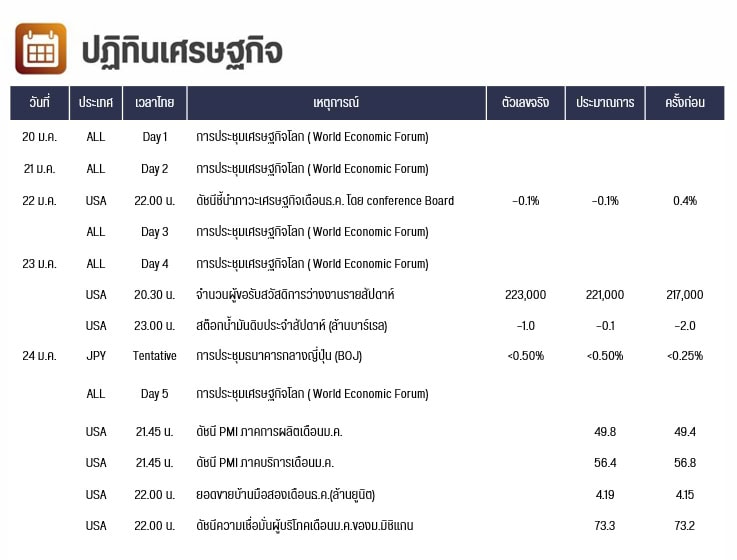 คืนนี้สหรัฐฯ จะเปิดเผยดัชนี PMI ภาคการผลิตและภาคบริการเดือนม.ค. ยอดขายบ้านมือสองเดือนธ.ค. และดัชนีความเชื่อมั่นผู้บริโภคเดือนม.ค.ของม.มิชิแกน