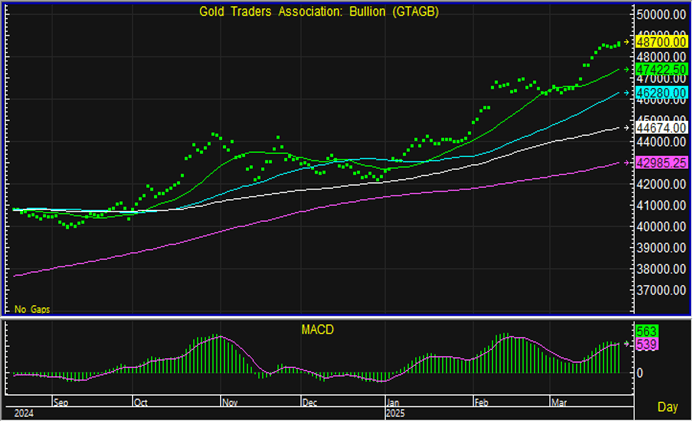 ราคาทองคำแท่งกลับมาปรับตัวขึ้น จากความกังวลเกี่ยวกับสงครามการค้ารุนแรง คาดว่านักลงทุนยังมีความกังวลประเด็นดังกล่าว โดยเฉพาะสัปดาห์หน้าที่ทรัมป์จะเก็บภาษีนำเข้าจริง จึงอาจทำให้ราคาทองคำแท่งยังทรงตัวในระดับสูง แม้สวนทางกับสัญญาณทางเทคนิคที่อาจชะลอตัวลงเล็กน้อย