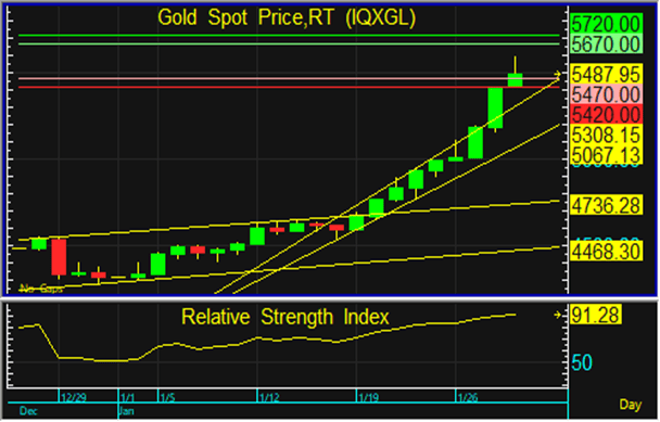 ทองโลกอยู่ในระยะขาขึ้นต่อเนื่อง จึงแนะนำใช้กลยุทธ์ทยอยขายตามแนวต้านที่ระดับ 5,670 และ 5,720 ดอลลาร์ และทยอยซื้อสะสมหากราคาลงทดสอบแนวรับที่ 5,470 ดอลลาร์ แต่หากราคาหลุดแนวรับที่ 5,420 ดอลลาร์ ลงไป แนะนำขายตัดขาดทุน