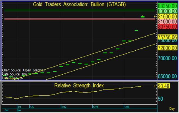 ราคาทองในประเทศมีการปรับตัวขึ้นตามทองโลก ในขณะที่ค่าเงินบาท Sideway จึงแนะนำทยอยขายตามแนวต้านที่ระดับ 83,000 และทยอยซื้อตามแนวรับที่ 81,000 บาท แต่หากราคาหลุดแนวรับที่ 80,750 บาท ลงไป แนะนำขายตัดขาดทุน