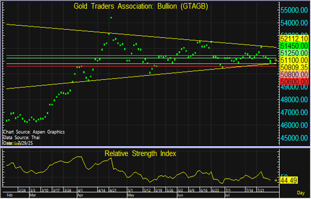 ราคาทองในประเทศอยู่ในระยะ Sideway ตามทองโลก ขณะที่ค่าเงินบาทกลับมาแข็งค่าระยะสั้น จึงแนะนำเข้าซื้อสะสมแนวรับที่ระดับ 50,800 บาท และขายทำกำไรหากราคาทดสอบแนวต้านที่ 51,250 บาท แต่หากราคาหลุดแนวรับที่ 50,600 บาทลงไป แนะนำขายตัดขาดทุน