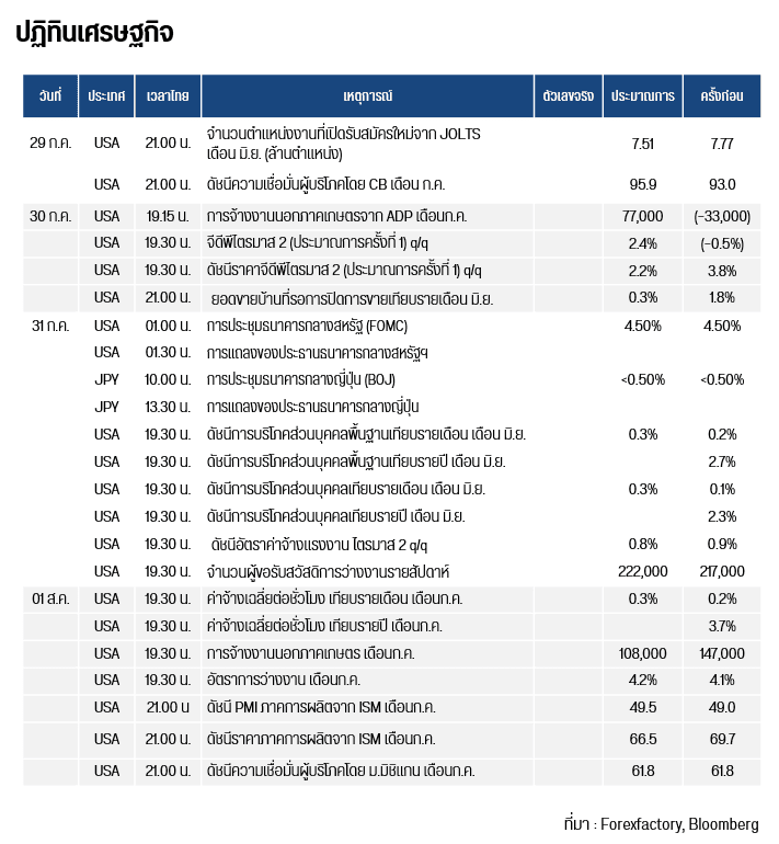 คืนนี้เวลา 21.00 น. สหรัฐฯ ประกาศจำนวนตำแหน่งงานที่เปิดรับสมัครใหม่จาก JOLTS เดือน มิ.ย. และ ดัชนีความเชื่อมั่นผู้บริโภคโดย CB เดือน ก.ค.
