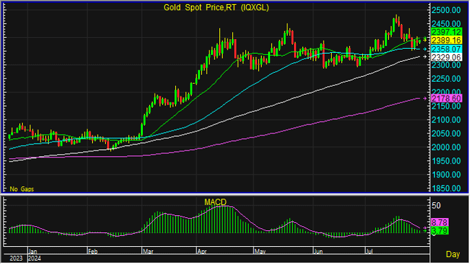 ราคาทองคำเคลื่อนไหว Sideways ซึ่งตลาดรอความชัดเจนของผลการประชุมเฟดที่จะทราบในคืนวันพรุ่งนี้ ทั้งนี้ตลาดคาดว่าเฟดจะยังคงตรึงอัตราดอกเบี้ย แต่อาจมีสัญญาณจากเฟดเกี่ยวกับการปรับลดดอกเบี้ยในเดือนก.ย. ซึ่งจะสร้างปัจจัยบวกต่อตลาดทองคำ นอกจากนี้ยังมีการประชุมธนาคารกลางที่สำคัญ ได้แก่ การประชุมธนาคารกลางญี่ปุ่น ตลาดคาดตรึงอัตราดอกเบี้ยเช่นกัน แต่ก็มีนักเศรษฐศาสตร์ในโพลสำรวจของสำนักข่าวรอยเตอร์คาดการณ์ว่า BOJ จะปรับขึ้นอัตราดอกเบี้ยสู่ระดับ 0.1% จากปัจจุบันที่ระดับ 0%-0.1%