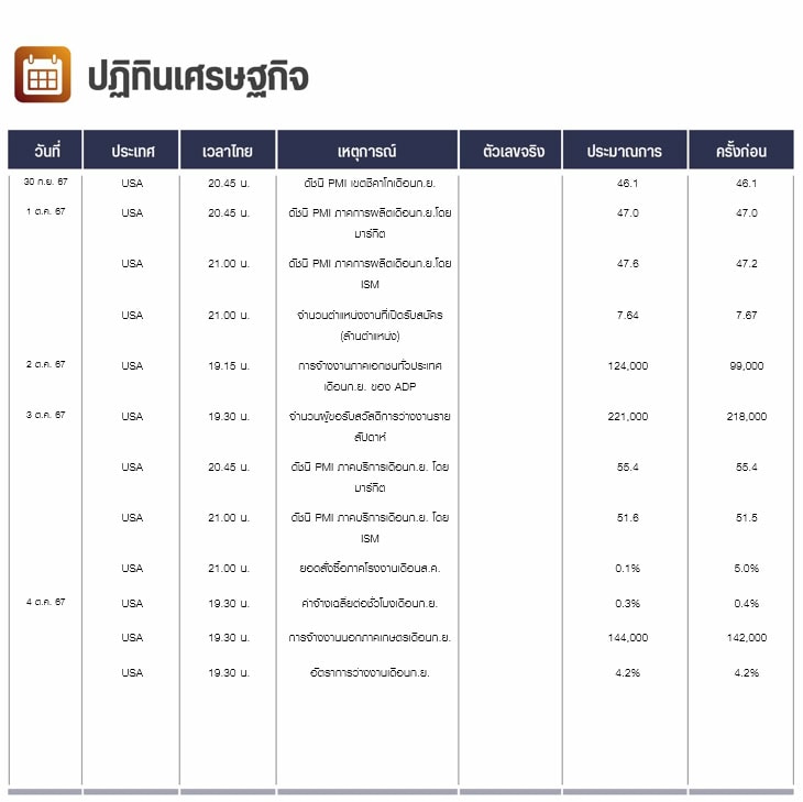 คืนนี้สหรัฐจะเปิดเผยดัชนี PMI เขตชิคาโกเดือนก.ย. ตลาดคาดว่าจะทรงตัวที่ระดับ 46.1