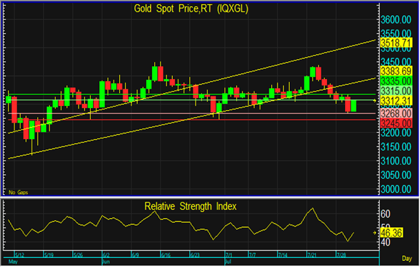ราคาทองโลกอยู๋ในระยะ Sideway Down แนะนำใช้กลยุทธ์รอเข้าซื้อสะสมจากแนวรับที่ระดับ 3,268 ดอลลาร์ และขายทำกำไรหากราคาขึ้นทดสอบแนวต้านที่ 3,315 ดอลลาร์ แต่หากราคาหลุดแนวรับที่ 3,245 ดอลลาร์ แนะนำขายตัดขาดทุน