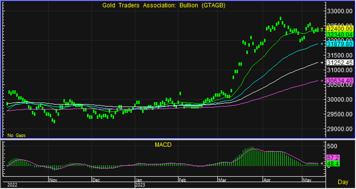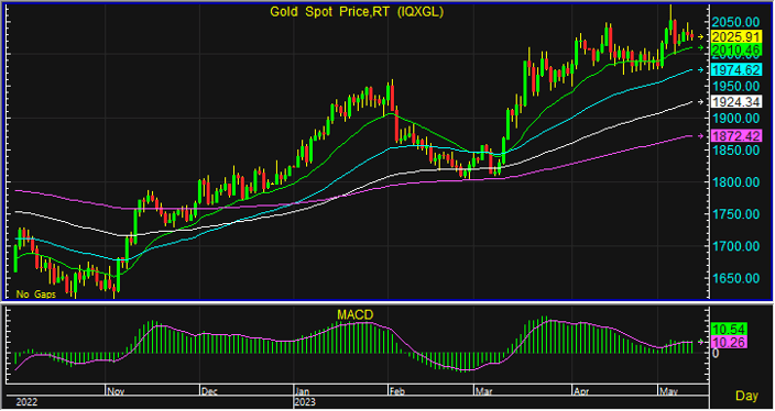 ราคาทองคำ Spot ช่วงกลางวันทรงตัวในทิศทางลบ อย่างไรก็ตามนักลงทุนยังจับตาสหรัฐจะเปิดเผยตัวเลขเงินเฟ้ออีกหนึ่งตัวในคืนนี้ นั่นคือ ดัชนีราคาผู้ผลิตของสหรัฐ ทั้งนี้เงินดอลลาร์ที่อ่อนค่า และความกังวลเกี่ยวกับภาวะเศรษฐกิจสหรัฐยังคงหนุนราคาทองคำให้ทรงตัวในระดับสูง ขณะที่ยังคงมีความขัดแย้งเกี่ยวกับเพดานหนี้สหรัฐ ซึ่งวิกฤตเพดานหนี้สหรัฐก็ได้สร้างความวิตกกังวลให้กับญี่ปุ่นซึ่งเป็นเจ้าภาพประชุม G7 ในปีนี้ เนื่องจากเป็นผู้ถือพันธบัตรรัฐบาลสหรัฐรายใหญ่ที่สุดในโลก ทางด้านเจพีมอร์แกน ชี้ว่าความขัดแย้งเพดานหนี้และแนวโน้มการผิดชำระหนี้ของสหรัฐจะสร้างความตื่นตระหนกทางการเงิน และอาจนำไปสู่สถานการณ์ที่เหมือนกับวิกฤตการเงินปี 2551-2552